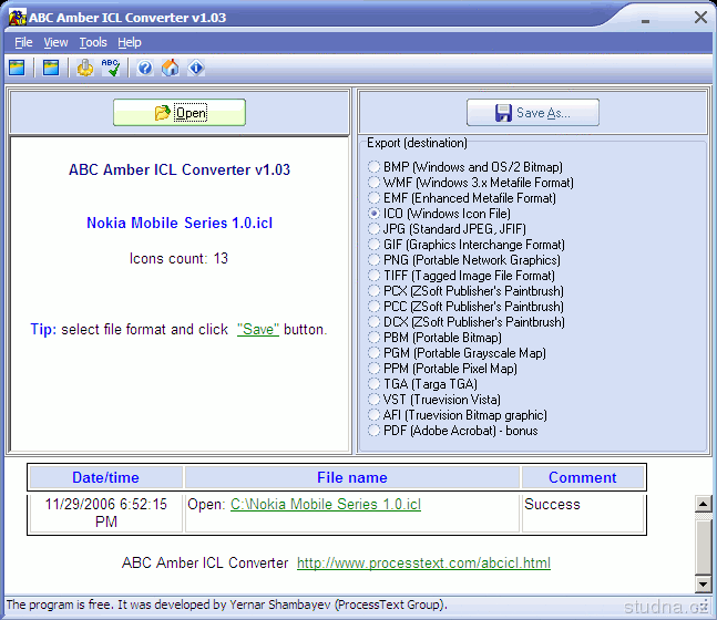 Pokročilý nástroj k extrakci ikon z ICL (Icon Library) souborů a jejich konverzi do grafického formátu libovolného typu: BMP, WMF, EMF, ICO, JPG, GIF, PNG, TIFF, PCX, PCC, DCX, PBM, PGM, PPM, TGA, aj.