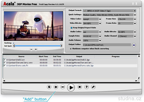 Program pro snadnou konverzi zvukových souborů (MP3/WMA/AMR/OGG/AAC/WAV) a souborů videa (MP4/3GP/MPG/AVI/WMV/FLV/SWF).