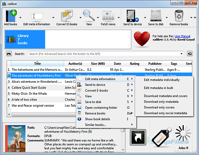Program umožňující vést přehlednou databázi elektronických knih (e-book).