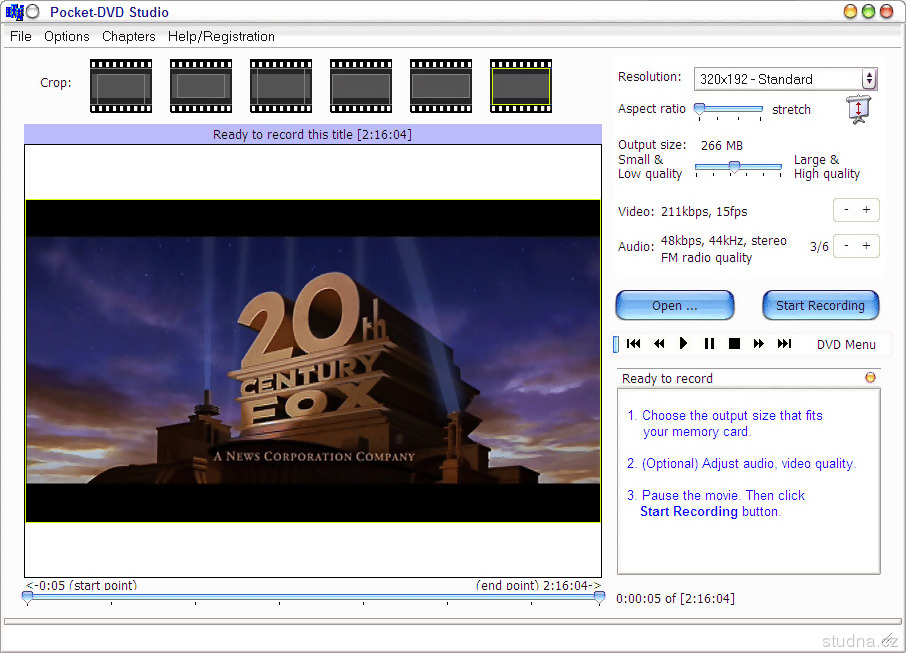 Parametry programu Pocket DVD Studio 4.0