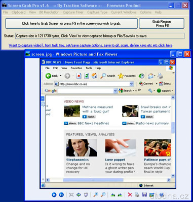 Snímač obrazovky umožňující uložení snímků v šesti různých grafických formátech, odeslání na tiskárnu nebo e-mailem.