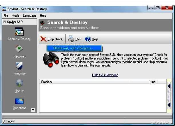 Spybot - Search & Destroy je výkonný nástroj pro detekci a odstranění adware, spyware, trojských koní, keyloggerů, dialerů a dalších nebezpečných a obtížných programů.