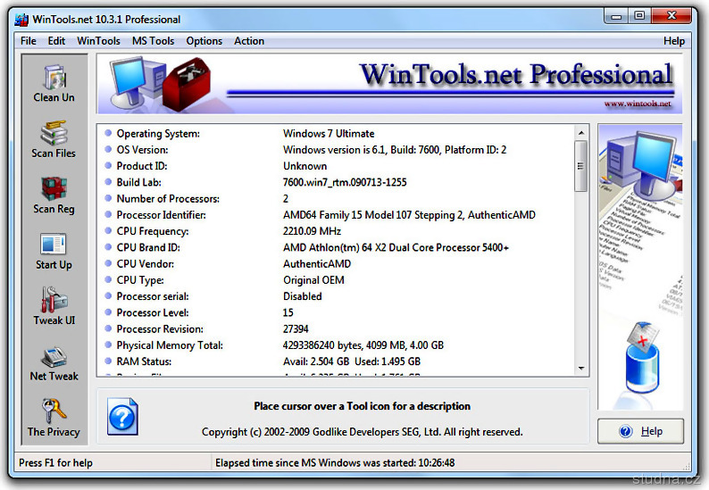 Parametry programu WinTools.net Professional 14.3.1